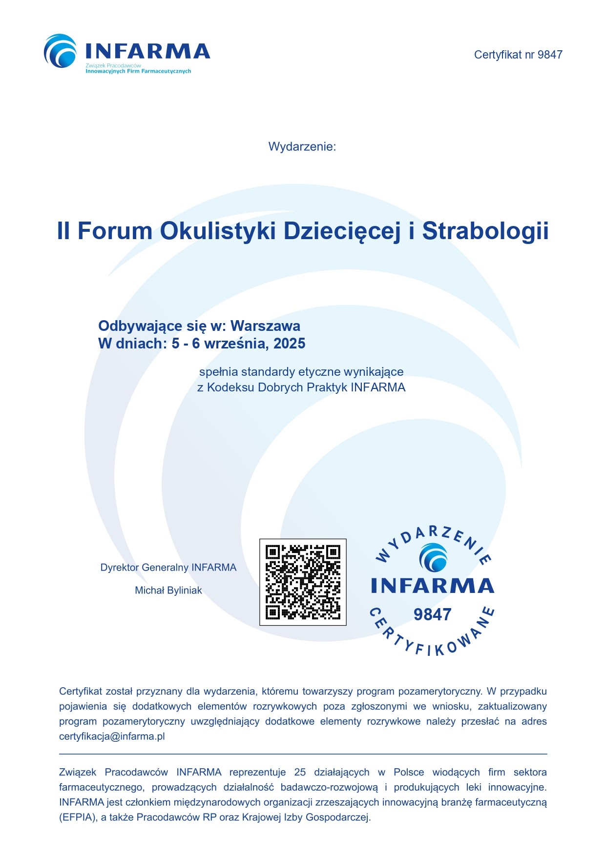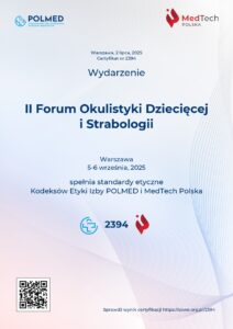 Serdecznie dziękujemy za tak liczny udział w drugiej edycji Forum Okulistyki Dziecięcej i Strabologii, które odbyło się w dniach 5-6 września 2025 roku w Centrum Konferencyjno-Szkoleniowym Hotelu Boss w Warszawie, (ul. Żwanowiecka 20). Organizatorem Forum była Klinika Okulistyki, Instytutu „Pomnik – Centrum Zdrowia Dziecka”.